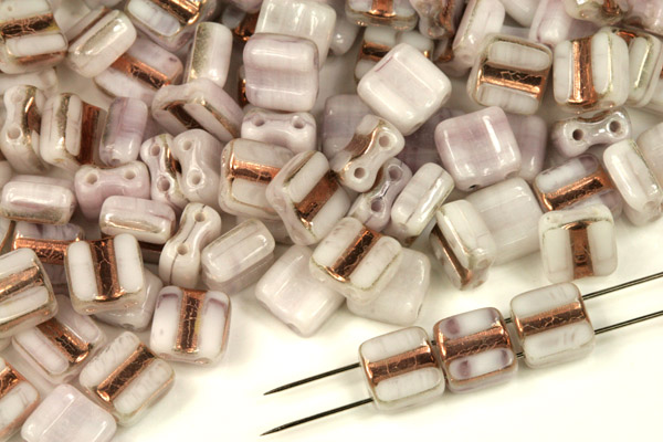 - Silky beads Block ploškované 6x6 mm, 30 ks - žíhaná bílo-růžová s půlpokovem zlato Capri