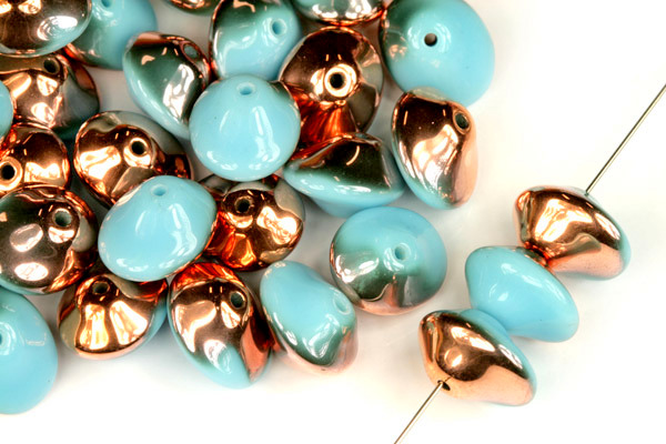 - Ufo beads 7x11 mm, 10 ks - sytá tyrkysově modrá s půlpokovem zlato Capri
