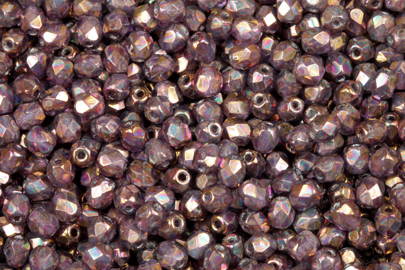 Broušené ohňovky o velikosti 4 mm s metalickým fialovým listrem na krystalu.