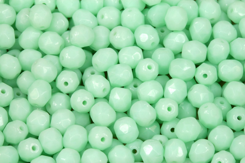 Broušené korálky ohňovky o velikosti 6 mm jsou vyrobené ze sytého mintově zeleného skla v odstínu modrozelený tyrkys (63100).