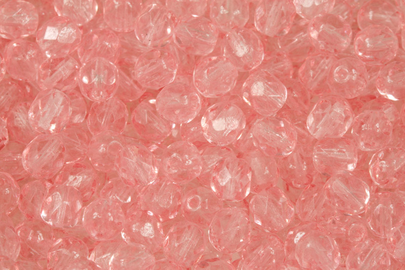 - Broušené korálky ohňovky 6 mm, 27 ks/16 cm - transparentní růžová, barveno