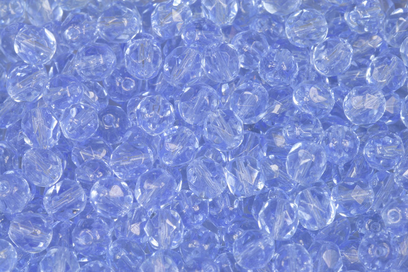 Broušené korálky ohňovky o velikosti 6 mm jsou vyrobené z transparentního světle modrého skla v odstínu světlý safír (30020).