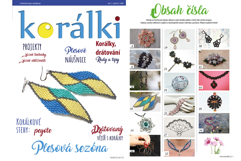 V jarním čísle tvořivého čtvrtletníku Korálki najdete 17 projektů na téma PLESŮ A SLAVNOSTNÍCH UDÁLOSTÍ. Uvnitř čísla najdete návody na krásné šité projekty, ketlování, drátování i kroužkování. Kromě šperků vás čeká i reportáž o technice Tiffany vitráží, recepty pro načerpání jarní energie a seriál, v němž si zrekapitulujeme jednotlivé typy korálkových stehů.