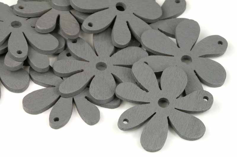 - Dřevěná květinka výsek, velká 35 mm, 1 ks - šedá