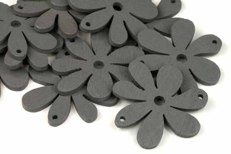 - Dřevěná květinka výsek, velká 35 mm, 1 ks - tmavší šedá