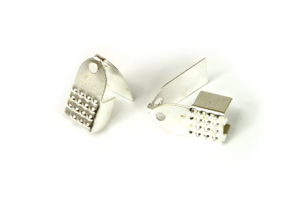 POUŽITÍ KONCOVKY: ukončujete-li šifónové či saténové stuhy, opalte otřepený koneček stuhy nad plamenem. Stejně upravujte konce nylonových šňůrek. Ohněte stříšku a nakonec pomocí plochých klešní zahněte boky koncovky. Pro kompletaci zapínání např. na náramku nebo náhrdelníku doplňte spojovacími kroužky a libovolným zapínáním.