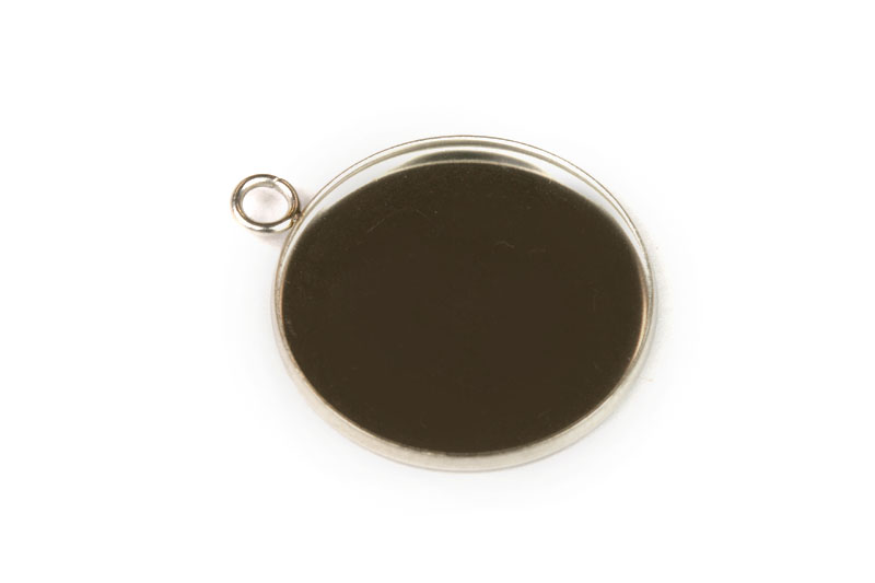 - Kotlík kulatý s očkem, pro kabošon o průměru 25 mm, nerezová ocel AISI 304, 1 ks