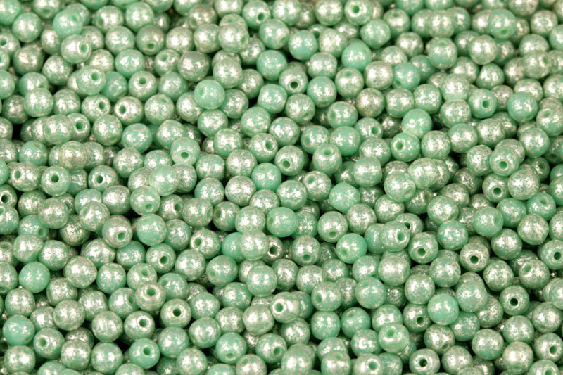 Mačkané korálky kuličky 3 mm, 100 ks - stříbrná terakota na sytém zeleném tyrkysuSkladem29 Kč/ bal.