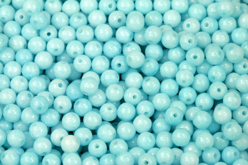 Mačkané korálky kuličky 4 mm, 40 ks/16 cm - světlejší tyrkysově modrý listr na kříděSkladem15 Kč/ bal.