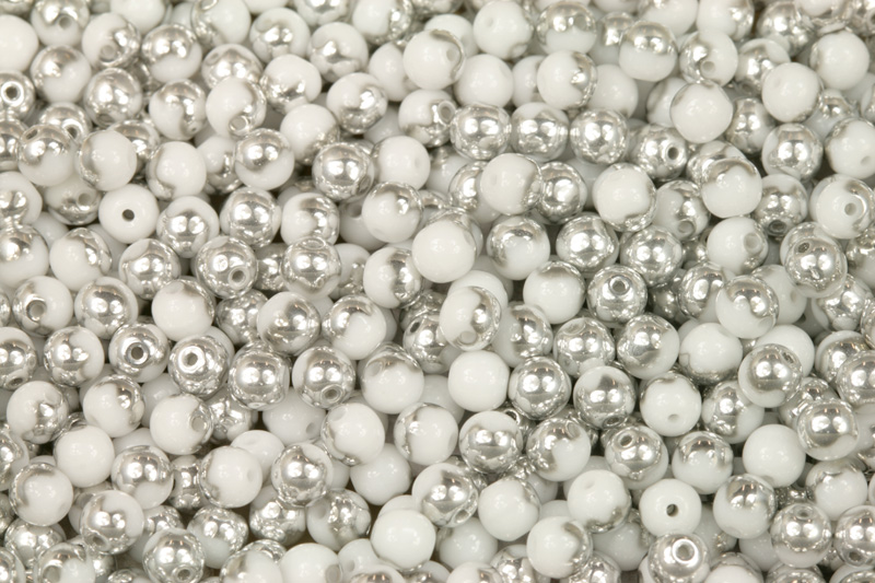 Skleněné korálky ve tvaru pravidelných kuliček o průměru 4 mm.