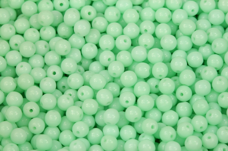 Skleněné korálky ve tvaru pravidelných kuliček o průměru 4 mm.