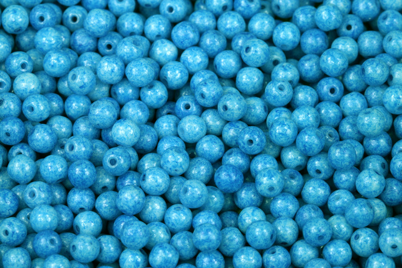Mačkané korálky kuličky 4 mm, 40 ks/16 cm - tyrkysově modrý listr na syté kříděSkladem15 Kč/ bal.