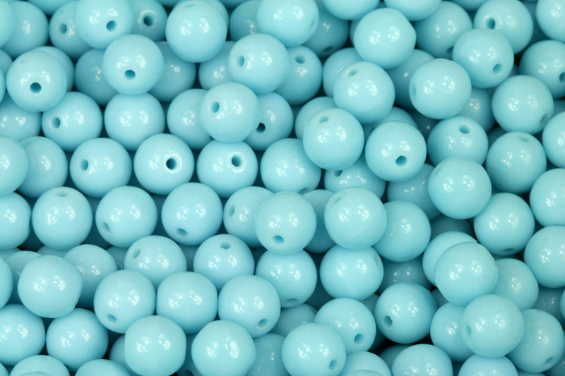 Skleněné mačkané korálky ve tvaru kuliček o průměru 6 mm jsou vyrobeny ze sytého tyrkysově modrého skla (63020).