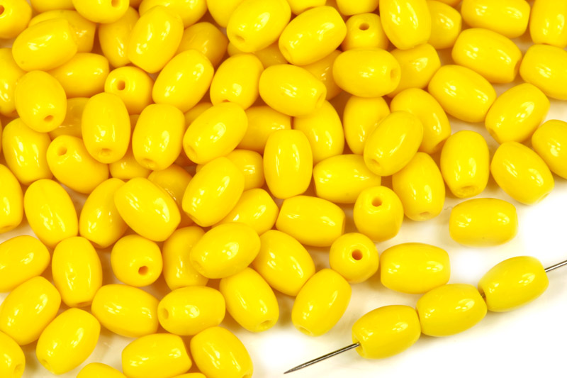 Skleněné mačkané korálky ve tvaru olivy (oválku) o velikosti 6x4 mm jsou vyrobeny ze sytého žlutého skla v odstínu limon (83120).
