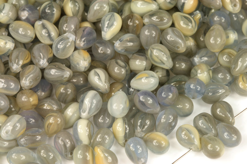 - Mačkané korálky slzičky, hrušky, 5x7 mm, příčná dírka, 50 ks - béžovo-šedé žíhané