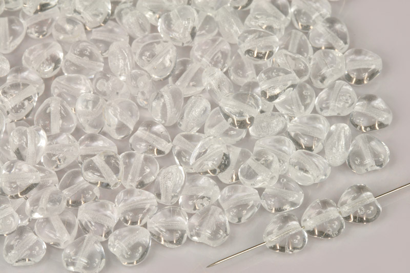 Tyto srdíčkové korálky jsou vyrobeny z čirého krystalového skla.