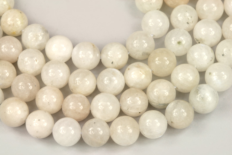 Minerální korálky o průměru 8 mm jsou vyrobené z měsíčního kamene. Jsou zcela ve svém přírodním vzhledu a odstínu, nedobarvené. Měsíční kámen se vyskytuje v mnoha odstínech, tyto korálky jsou zbarveny v odstínech bílé, místy světloučce šedobílé a smetanové, s třpytivými místečky, které barvou a odleskem připomínají rybí šupiny.
