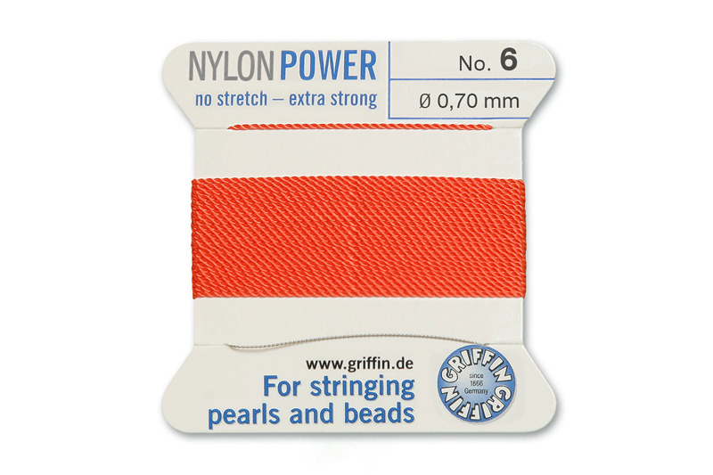 NylonPower (Griffin), stáčená nylon. šňůra s jehlou No.6 (0,7mm), 2m - korálová (coral)