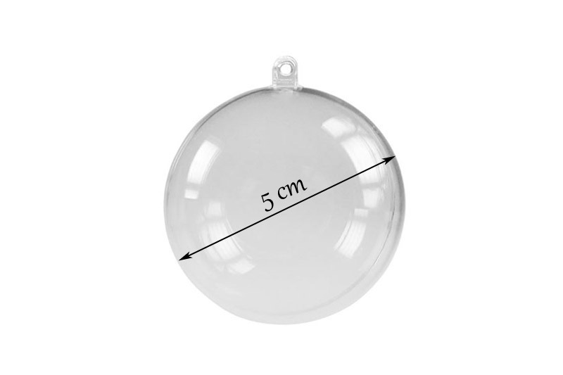 - Plastová koule (vánoční baňka) dvoudílná, průměr 5 cm, čirá, 1 ks (jednotlivě balená)