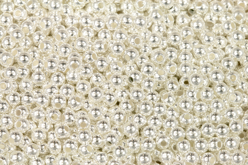 Plastové korálky, kulička 4 mm, 100 ks - stříbrný pokovSkladem27 Kč/ bal.