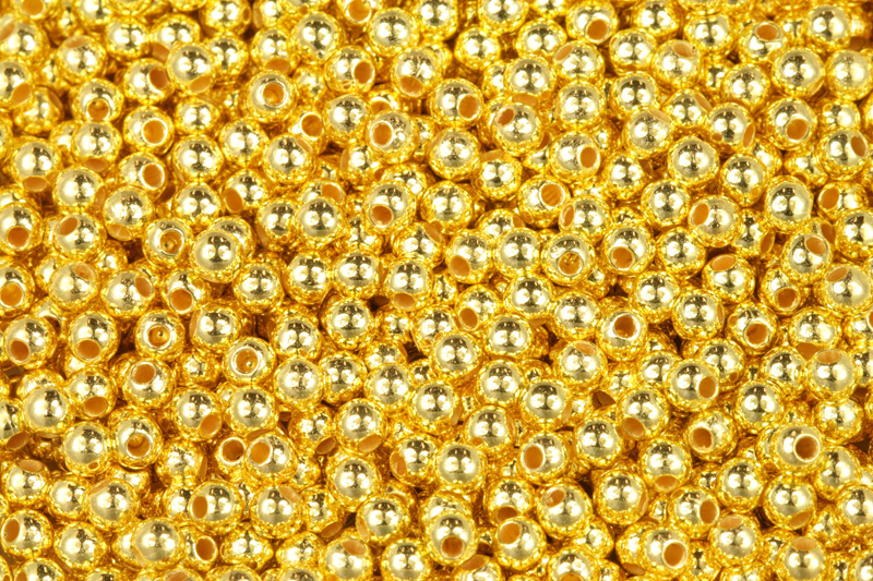 Plastové korálky, kulička 4 mm, 100 ks - barva zlatáSkladem27 Kč/ bal.