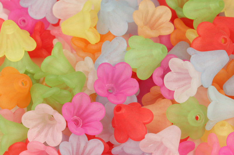 - Plastové korálky kytička, zvoneček malý 14x10 mm, 20 ks - mix matných barev, frost