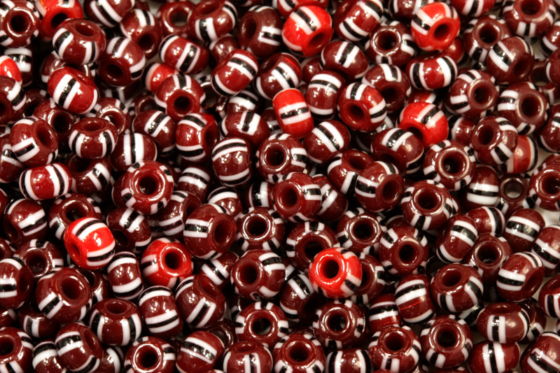 PRECIOSA rokajl 3/0 (5,3 - 5,8 mm) RH, bal. 50 g - sytá vínově červená, černé+bílé proužkySkladem45 Kč/ bal.