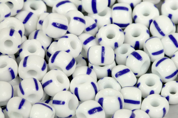 PRECIOSA rokajl 33/0 (7,8 - 8,3 mm) RH, bal. 50 g - bílá křída, modré proužkySkladem45 Kč/ bal.