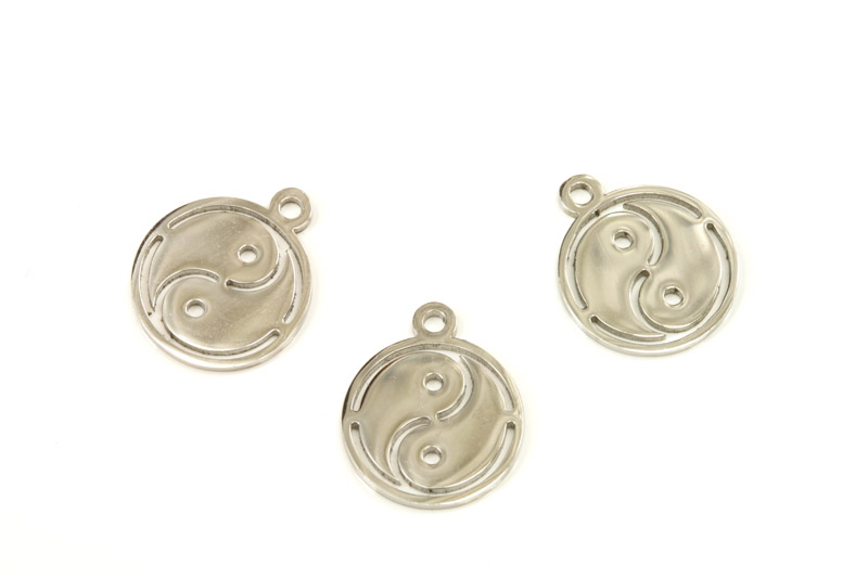 Přívěsek se symbolem jin-jang je vyroben z nerezové oceli třídy AISI 304. Průměr kruhu je 12 mm. Přívěsek je oboustranně vyleštěn do vysokého lesku.