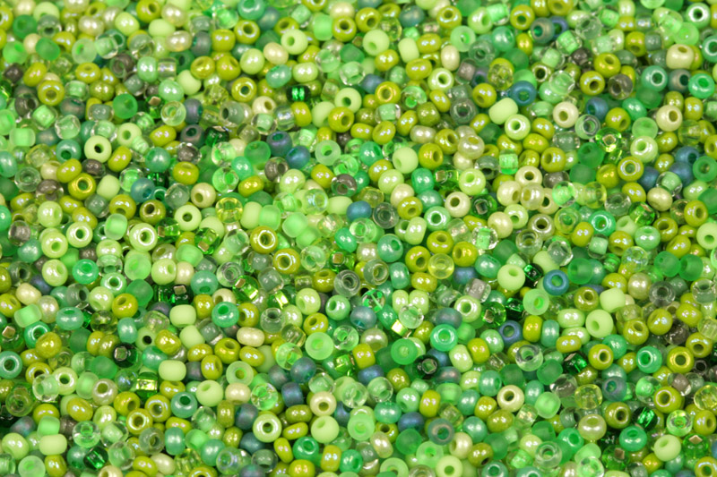 PRECIOSA rikajl MIX 10/0 (2,2 - 2,4 mm), bal. 50 g - svěží zelený mixSkladem40 Kč/ bal.