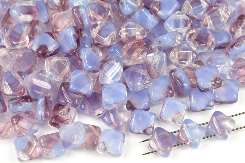 - Silky beads Diagonal 6x6 mm, 30 ks - transp. fialkovo-modrá opálová žíhaná