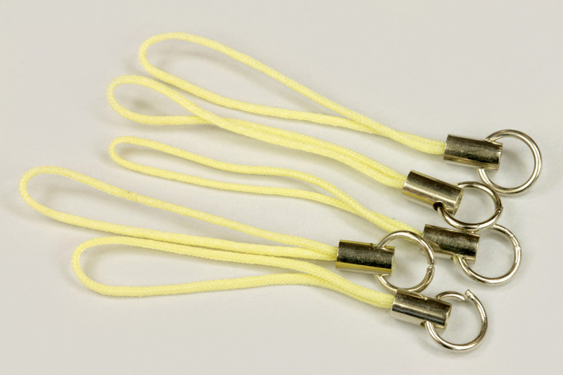 Šňůrka na mobil (přívěsek) s koncovkou a kroužkem, délka 5 cm, bal. 5 ks - žlutá pastelSkladem15 Kč/ bal.