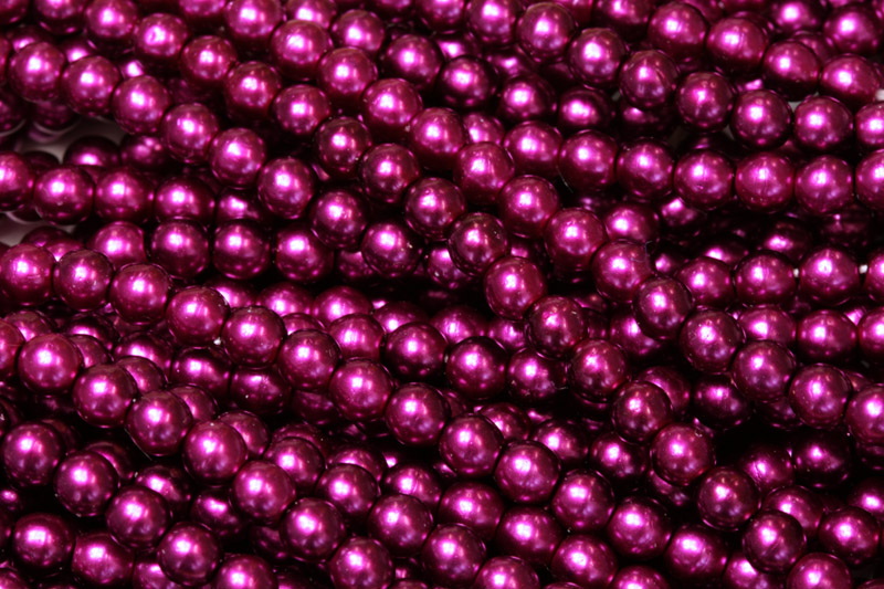 Skleněné korálky (perle) s voskovou povrchovou úpravou (voskovky, voskované perle) ve tmavším fuchsiovém odstínu (70096).
