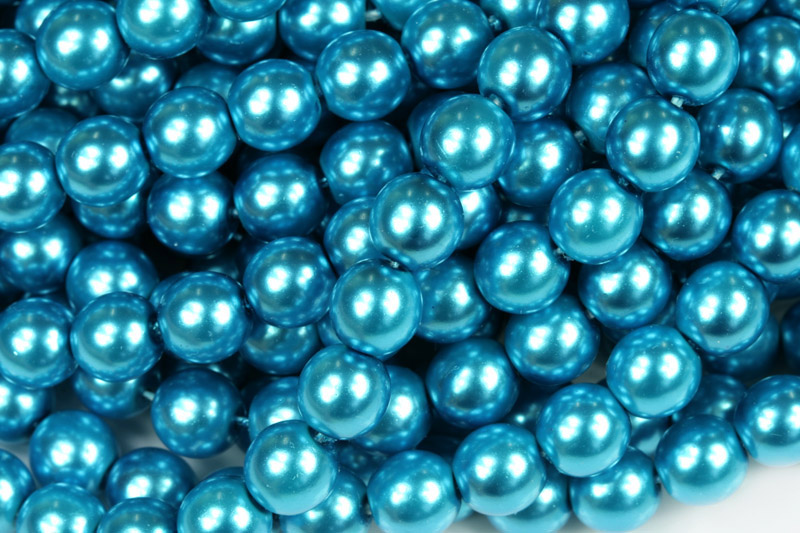 Skleněné korálky (perle) s voskovou povrchovou úpravou (voskovky, voskované perle) v tyrkysově modrém odstínu (70469).