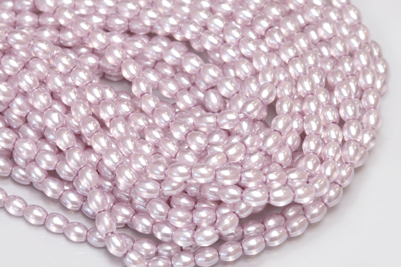 - Voskované korálky olivy 4x3 mm, 1 šňůra/120 ks - světle fialová, semitransparent